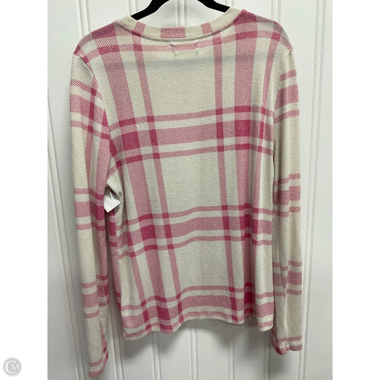 Top Long Sleeve By Anthropologie In Pink & White, Size: L
