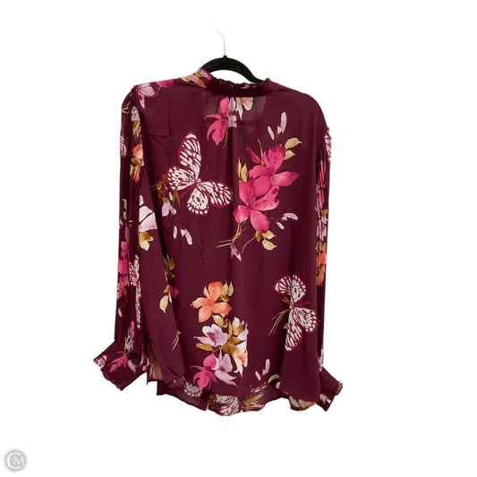 Blouse Long Sleeve By Colleen Lopez In Floral Print, Size: 3x