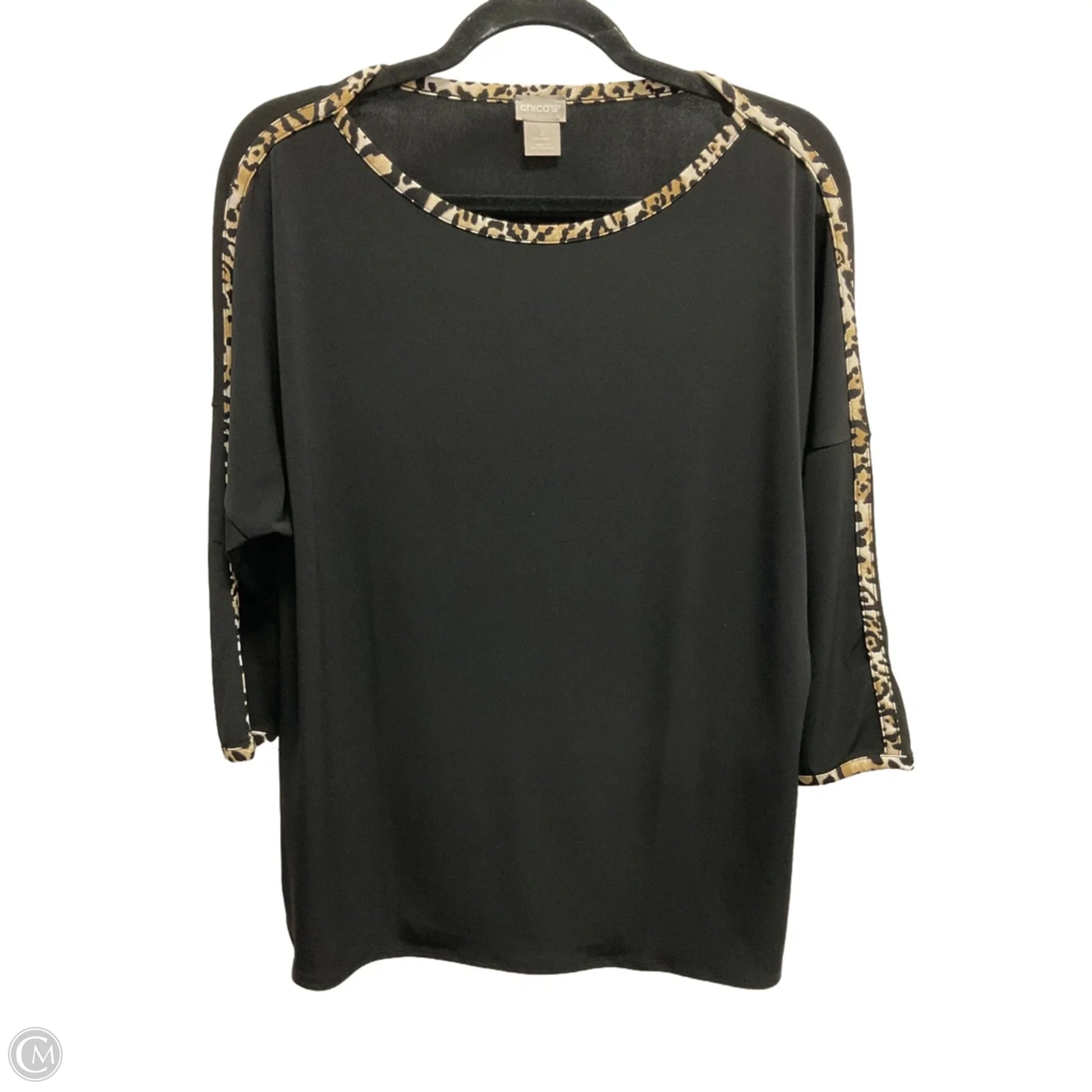 Top 3/4 Sleeve By Chicos In Black, Size: L