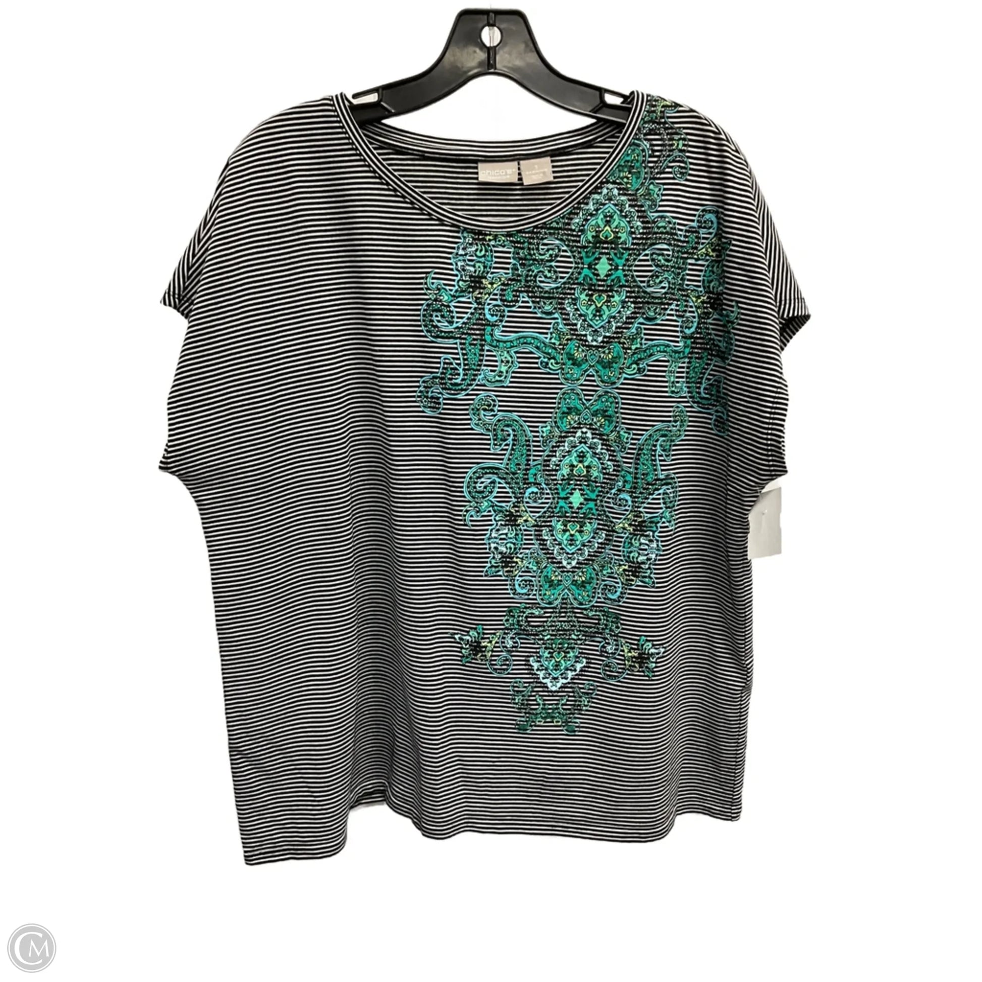 Top Short Sleeve By Chicos In Striped Pattern, Size: Xl